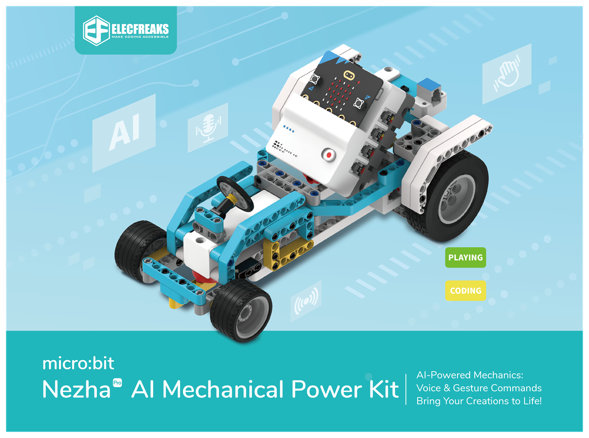 The micro:bit Nezha Pro AI Mechanical Power Kit is designed specifically for teenagers aged 7-14. With the Nezha Pro Expansion Board as its core, it is equipped with multiple sensors such as a voice recognition module and a gesture recognition sensor, along with over 500 building blocks. It supports controlling mechanical devices (such as robots, robotic arms, etc.) through voice commands or gesture movements. Integrating mechanical construction and AI interaction, 16 cases guide users from basic transmission to AI programming, cultivating spatial thinking and intelligent control abilities, and initiating science and innovation enlightenment.