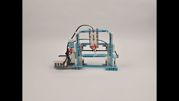 Long press button A on the micro:bit to control the tidal generator to move downward. When the dual-track line sensor detects that the tidal generator has dropped to a certain position, the tidal generator stops moving downward, triggers the tidal generator to rotate, and the rainbow LED ring lights up, simulating the scene of tidal power generation;