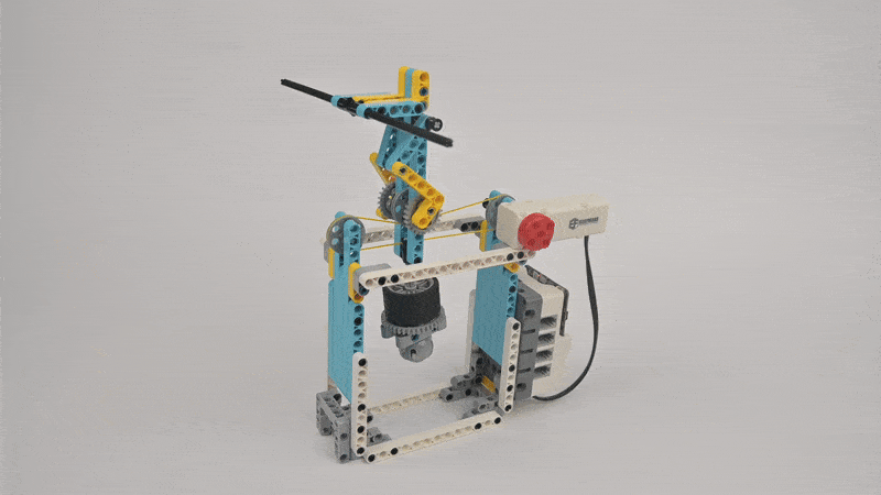 Use Nezha Pro Sport Kit to build a tightrope walking robot. The motor drives the rubber band (simulating the steel wire) to rotate, and the friction force transmission drives the unicycle figure above to ride stably. The unicycle figure achieves balance through the center of gravity control structure design (such as low center of gravity base, counterweight block), without the assistance of sensors. Let learners understand the principle of friction force transmission, the relationship between center of gravity and balance, and the application of mechanical structure in motion simulation in practice.