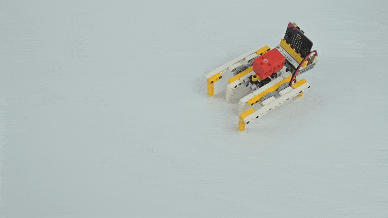 The spider moves forward when button A is pressed, it moves backward when button B is pressed, and it stops moving when button A+B is pressed.