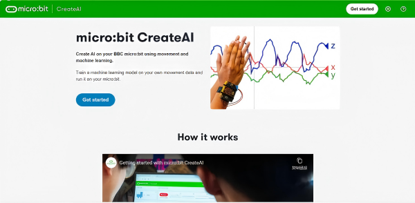 - Use the Chrome or Edge web browser to visit https://createai.microbit.org/ as shown in the figure below.