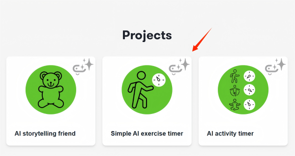 - Browse and read the relevant knowledge points, locate "Projects" and click the "Simple AI exercise timer" project.