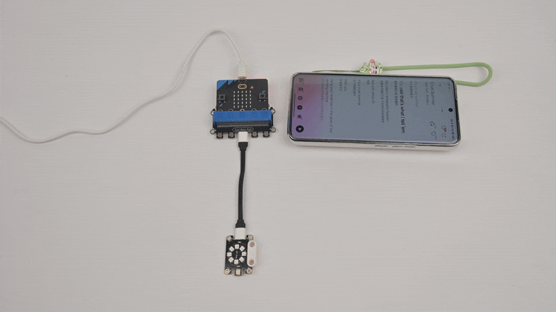 Use the microphone of micro:bit to capture the sound loudness and the strength of micro:bit v2 analyzer to control the light ring through the jacdac cable. Press the "B" button on the motherboard to turn on the function; press the "A" button to turn off the function.