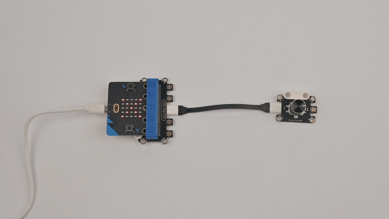 When the rotation angle of the rotary encoder is > 0, the micro:bit displays "√"; otherwise, it displays "×".