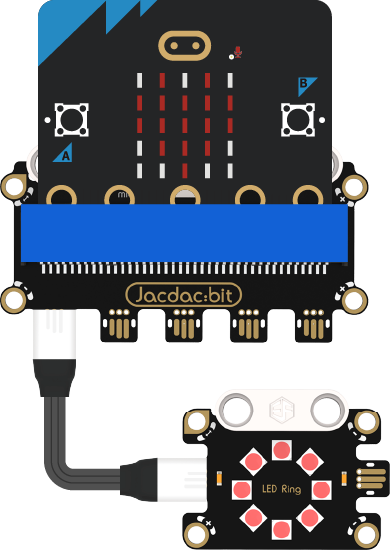 Press the A button on the micro:bit, and the LED ring lights up red; press the B button, and the LED ring turns off.