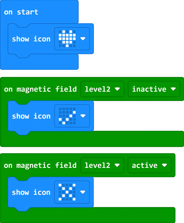 When the magnetic sensor detects a magnet, the micro:bit displays "√"; otherwise, it displays "×"