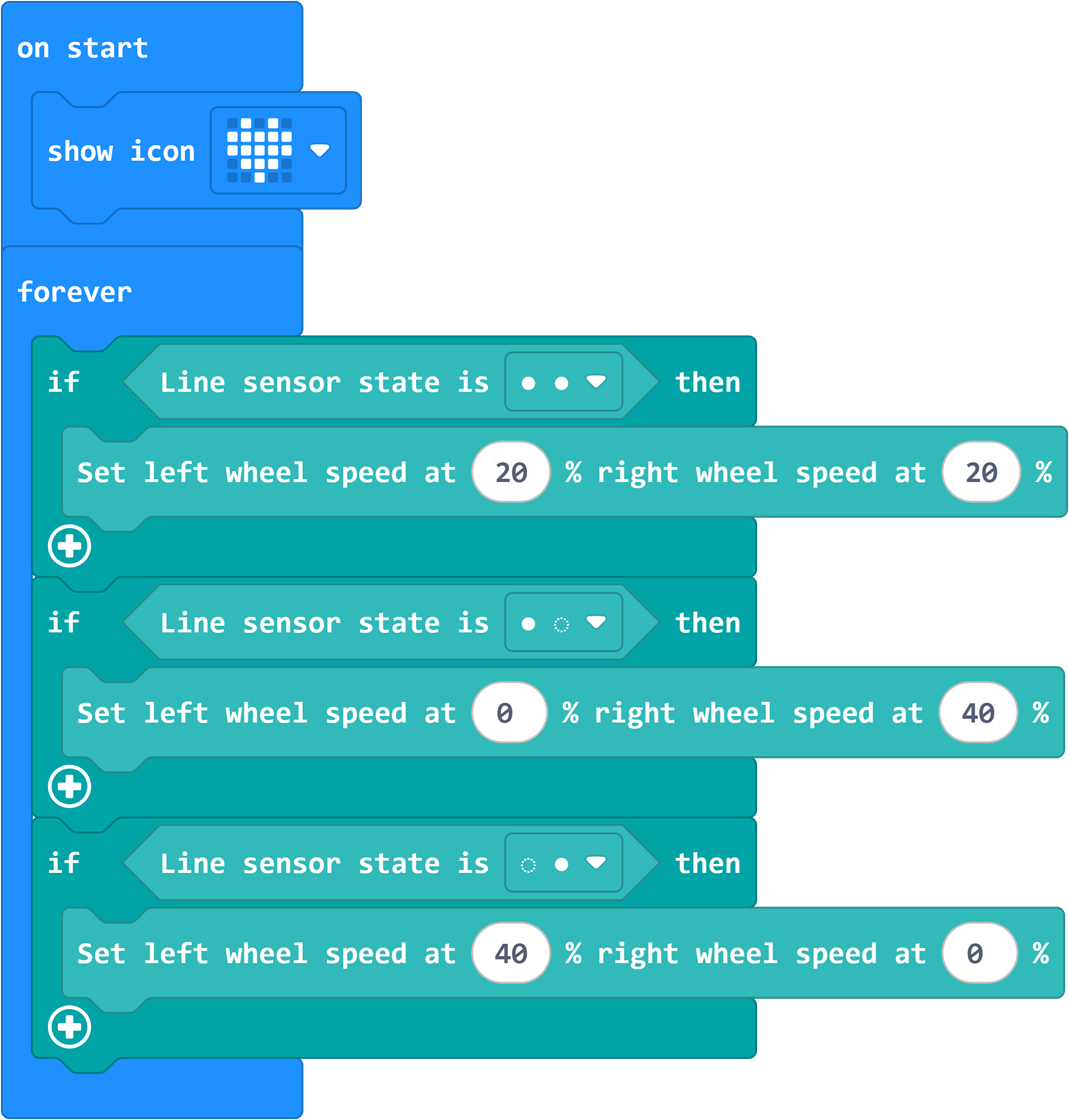 Use Makecode software to program and control Finally, we will practice and learn how to use Makecode software to create a program to control the car to follow the line. Makecode is an intuitive and easy-to-use programming platform that will help us simplify the programming process and allow us to quickly write line-following programs for the car.