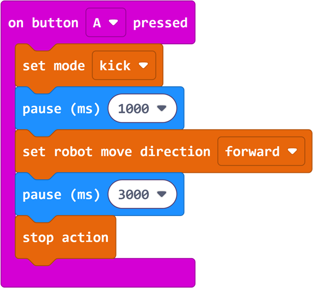 - Proficiently use the blocks "when button A is pressed", "walk straight", "kick" and "pause", and master the core usage of each block;