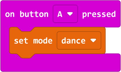 在熟练运用基础积木块与循环模块的基础上,学习默认动作积木块"舞蹈",自定义动作积木块"设置指定舵机转动角度"等新动作的功能与使用方法;