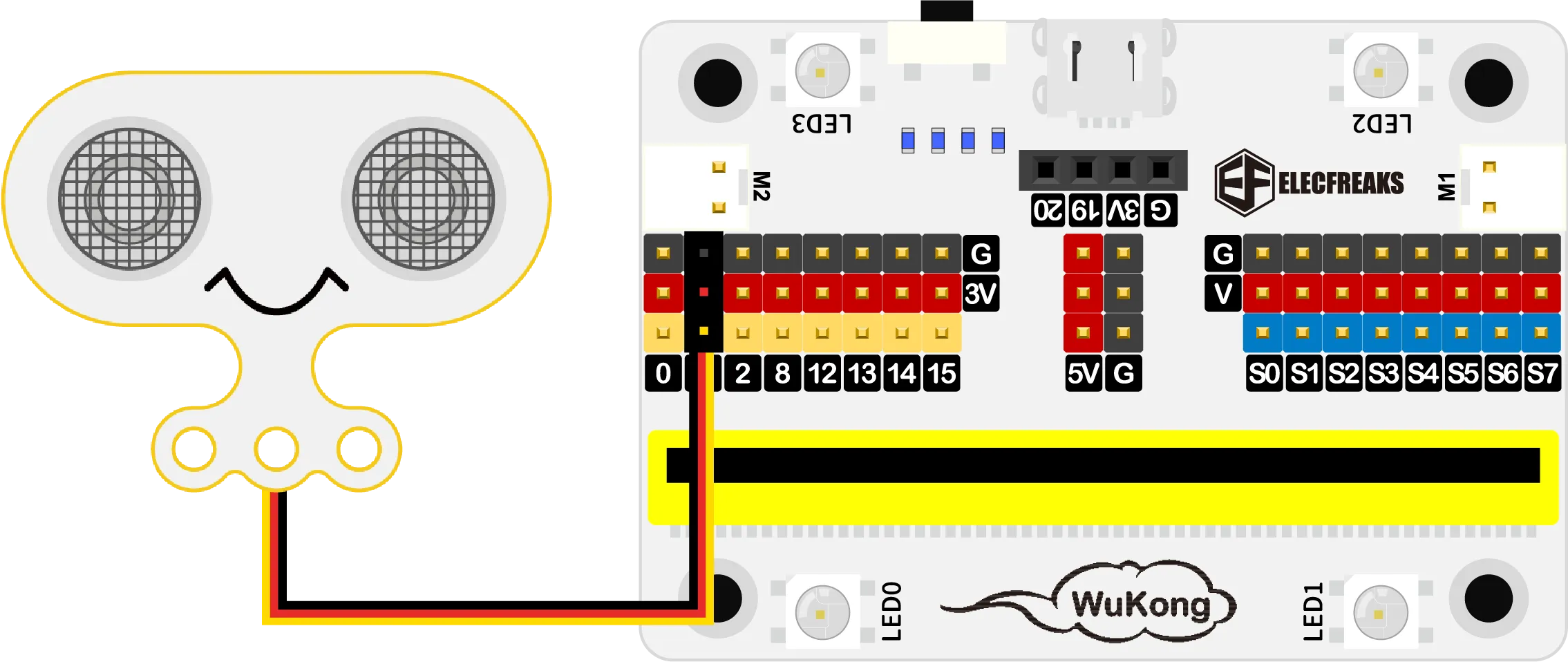 将超声波传感器连接到悟空扩展板的P1接口。