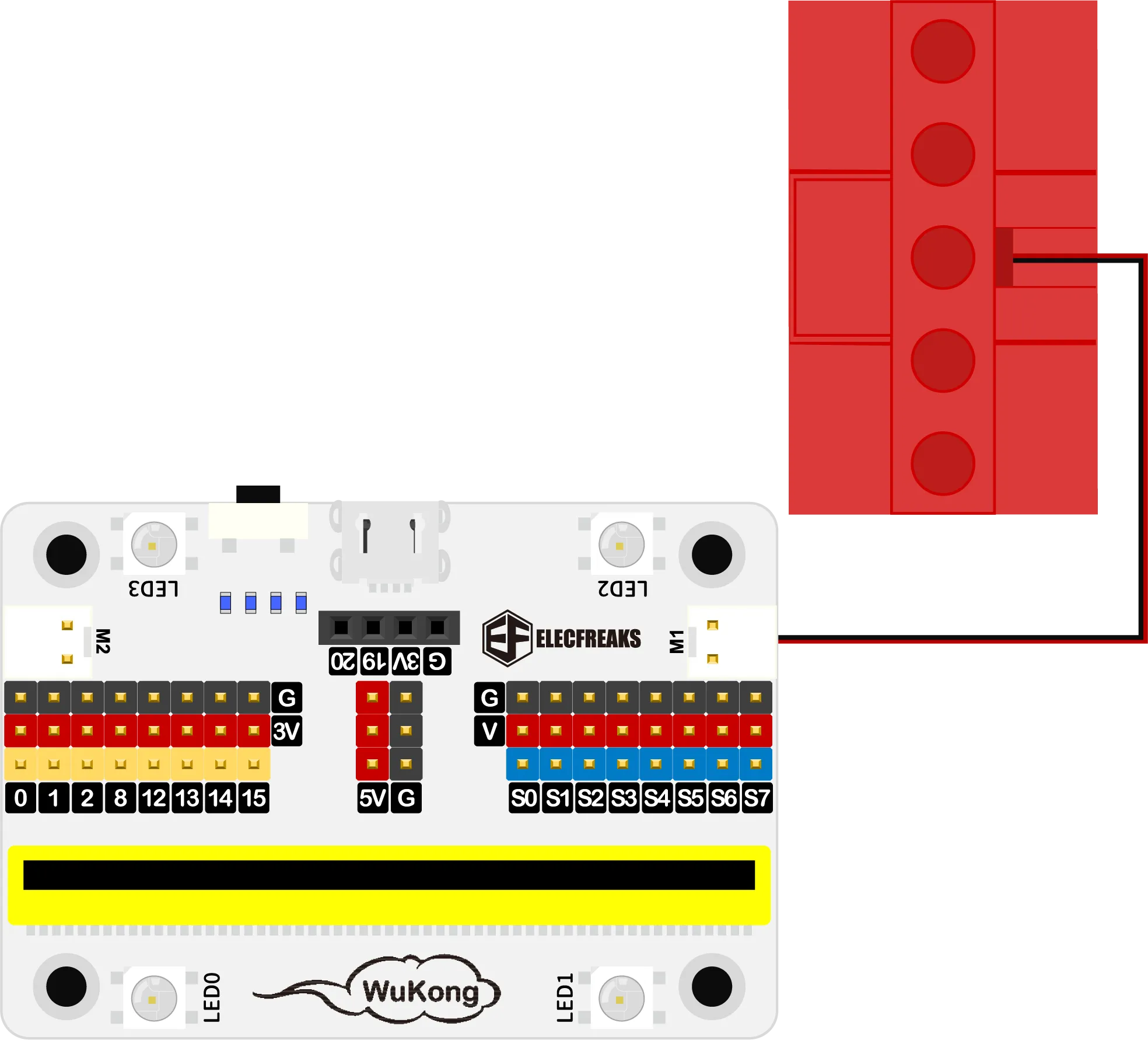 开启之后,当按下micro:bit上面的按键A时,机器人向前行走,当按下micro:bit上面的按键B时,机器人向后退。