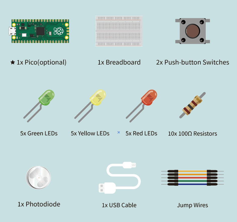 LED 灯是城市建设的重要组成部分,比如交通路口的红绿灯、商店的广告牌、公园路标灯光、商场走廊灯光等等,其应用非常广泛。这节课程,将使用 Pico 控制2颗 LED 灯实现交替闪烁效果。